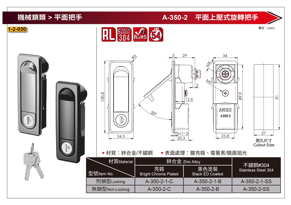 / A-350-2 平面上壓式旋轉把手