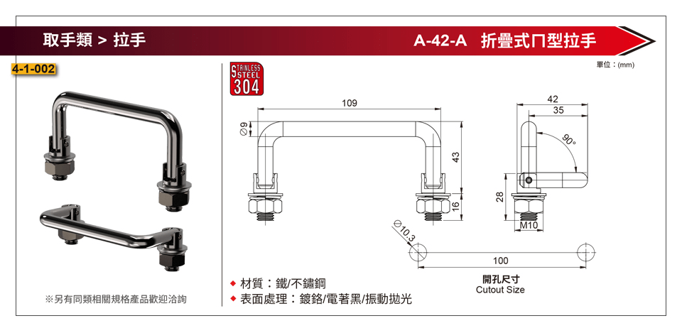 A-180-3-K 平面可掛鎖按壓式防水把手