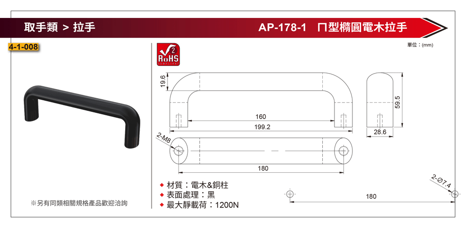 / AP-178-1 ㄇ型橢圓電木拉手